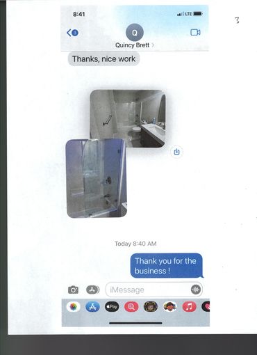 Here you see the one installer holding a mini shop vac against the other one drilling so there is no tile dust in the air that's how we operate. Having us work in your home, you will feel as though your home is getting surgery! Also we accept nothing less than perfect lines and gaps between glass, your job MUST COME OUT PERFECT!